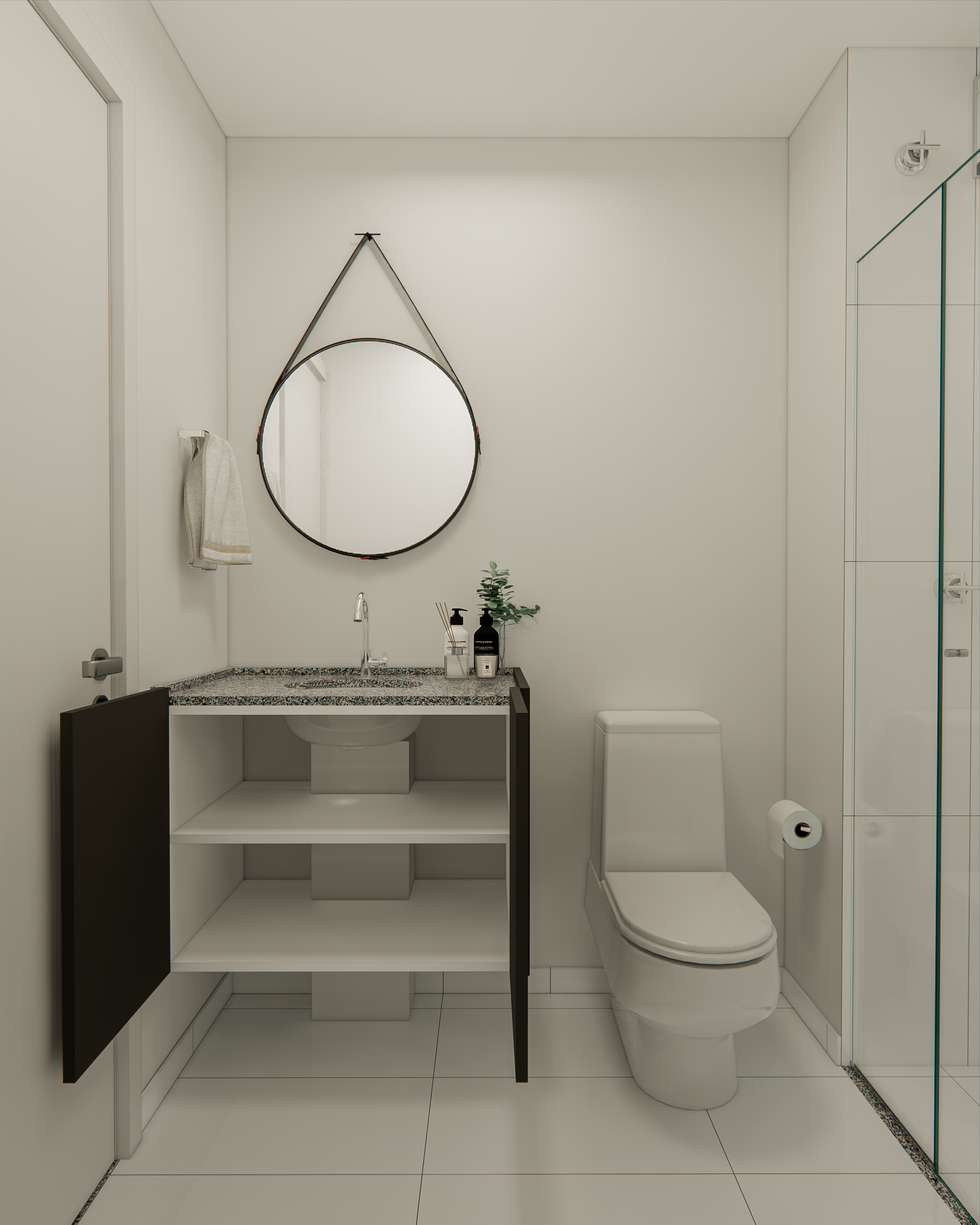 Neste studio compacto, o projeto buscou integrar os principais usos em um ambiente leve, fluido e inteligente. A marcenaria sob medida em preto fosco com madeira clara trouxe contraste e aconchego, otimizando ao máximo o espaço disponível.